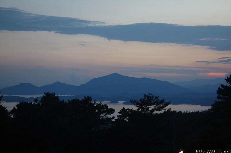 삼천포 바다 쪽으로 보이는 시가지 불빛도, 세섬바위와 민재봉 너머의 어둠도 좋다.