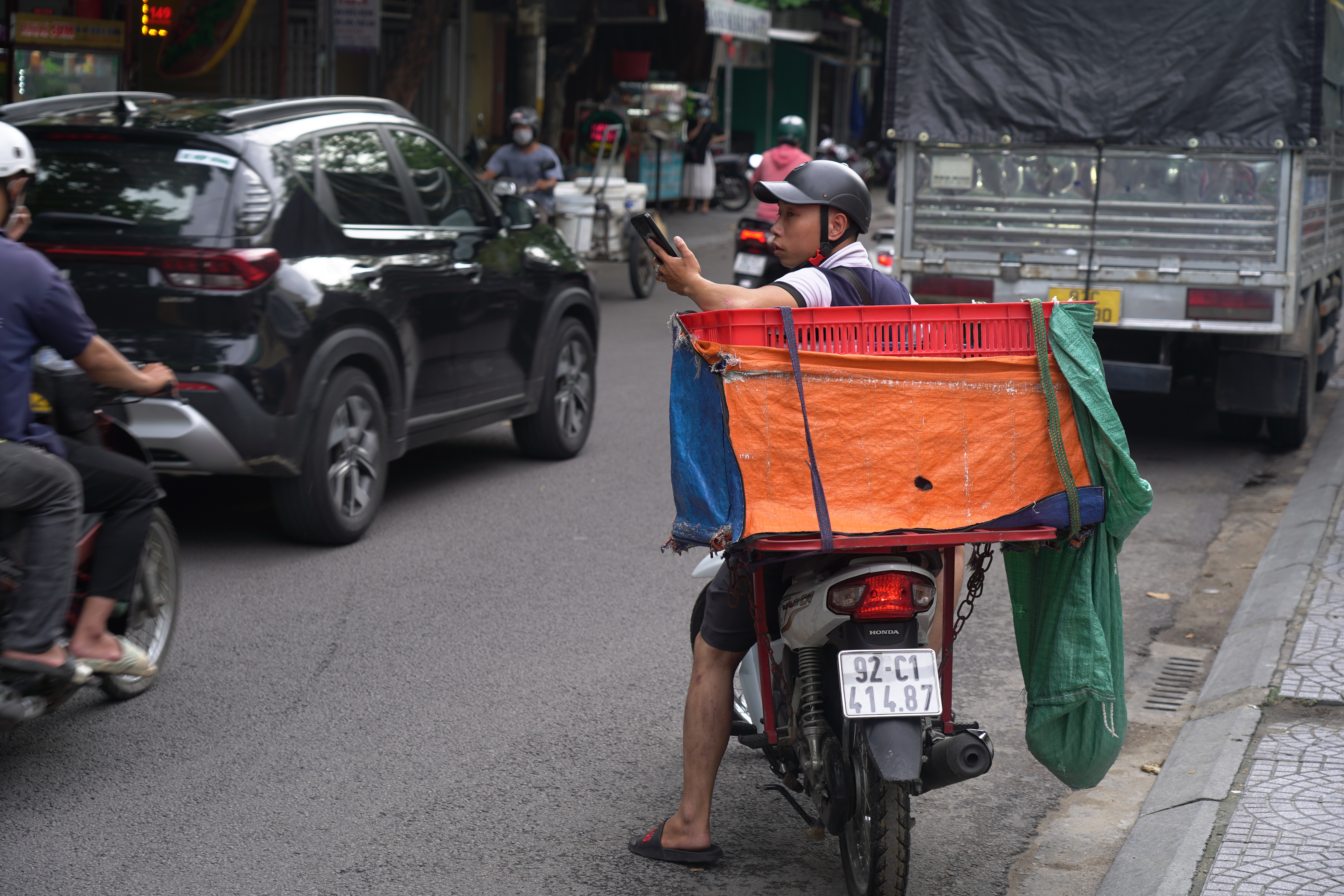 베트남 분들은 비옷을 입고 오토바이를 평소처럼 타셨다.