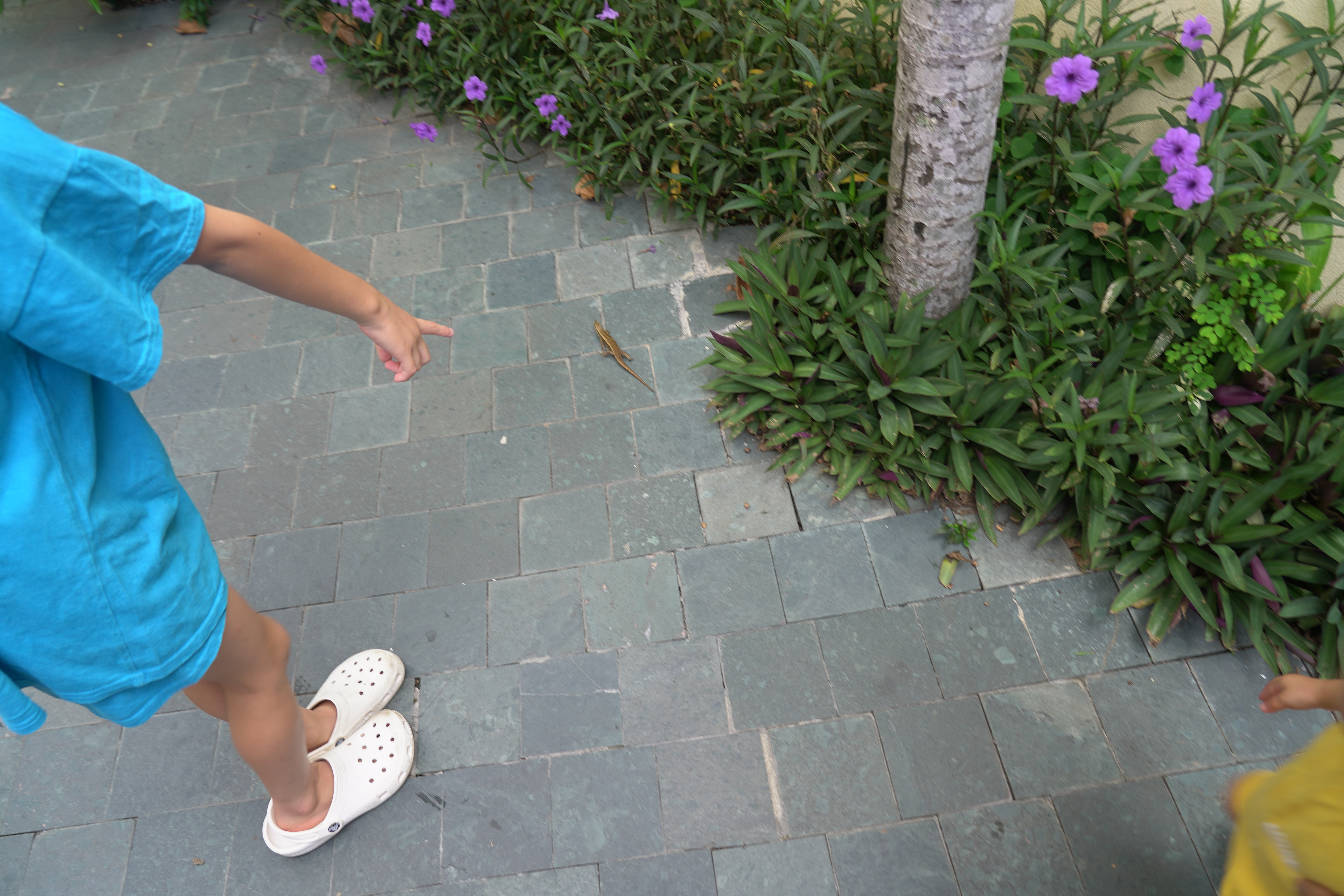 숙소를 나가며, 우리를 마중나온 도마뱀