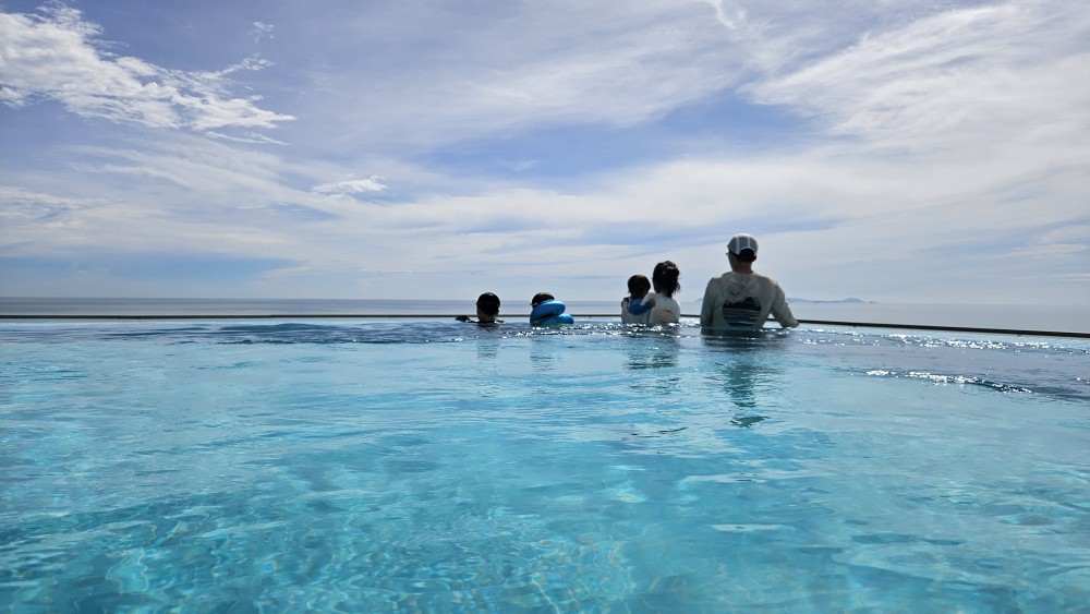 애들이랑 옥상에 있던 수영장에서 한참을 놀다가