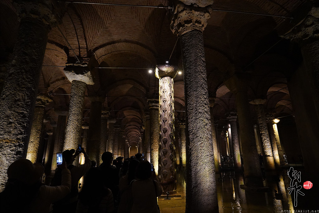 들어가면 큰 규모에 입이 딱 벌어진다. 지금으로 부터 1500년 전인 동로마 시대의 시설인데 규모와 아름다움이 장난 아니다. 인류의 평균 수명이 크게 늘어난 시점이 상수도의 보급 이후라고 하던데, 물을 적으로 부터 안전하게 보관하기 위해서 지하에 대규모 시설을 만들었다 한다. 기둥들을 다른 신전에서 가져왔다고 하는데, 거꾸로 박혀있는 메두사의 머리가 유명하다.