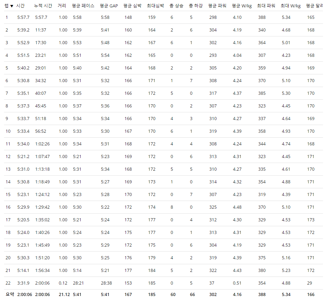 초반에도 6분 안으로는 뛰려했고 반환점까지는 5:40/km 페이스를 유지하면서 뛰었다.