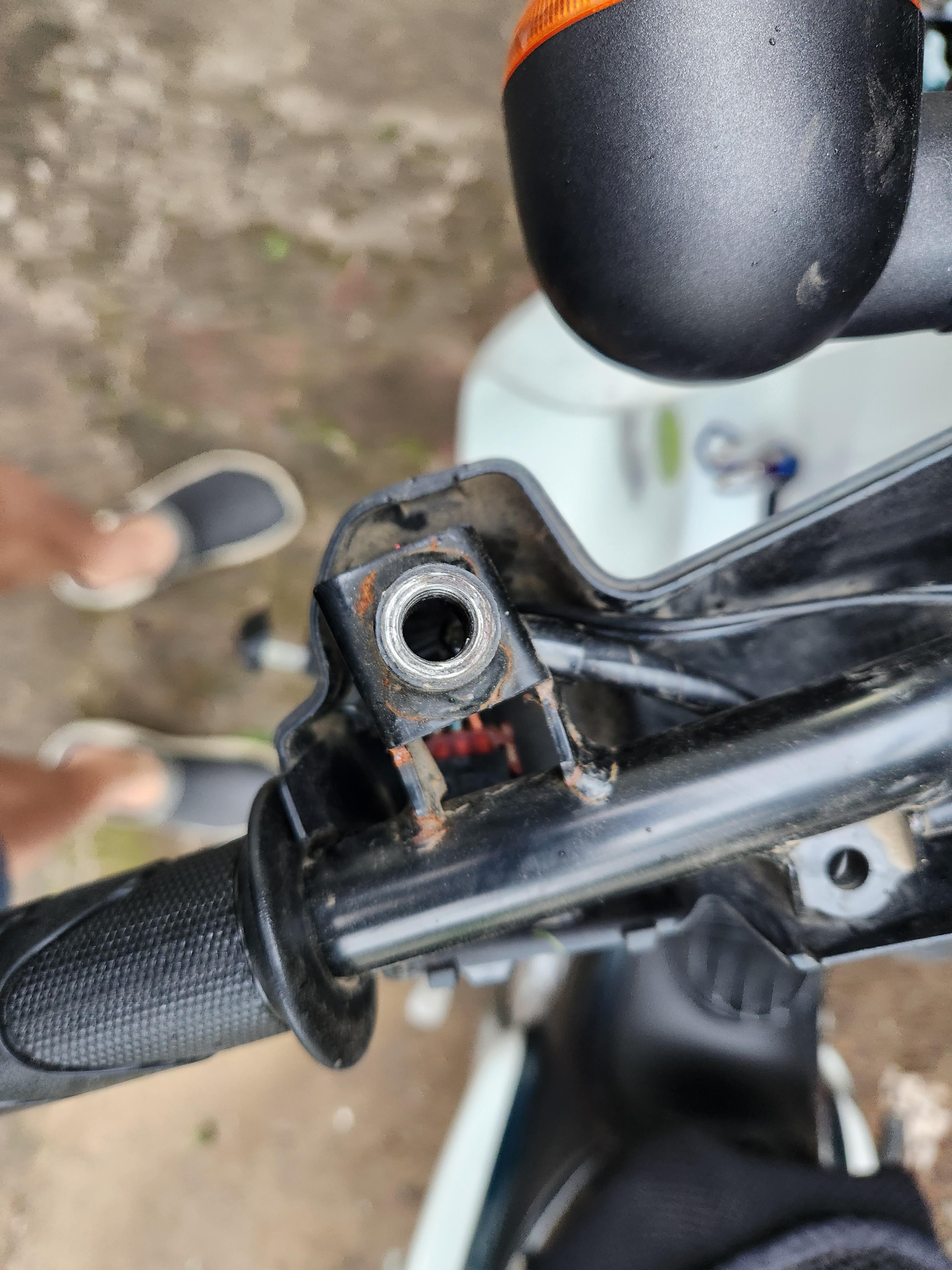 접합부에 녹이 쓸었고 그리고 이미 휘어져 있었다. 시간이 지나면 충격이 더해져 부러지겠지~