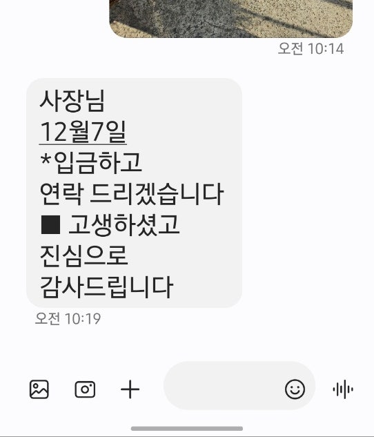 "싸게 해보려고 노력은 했는데, 이렇게 들었다." 라고 문자를 드리니