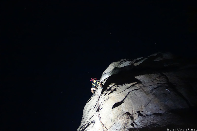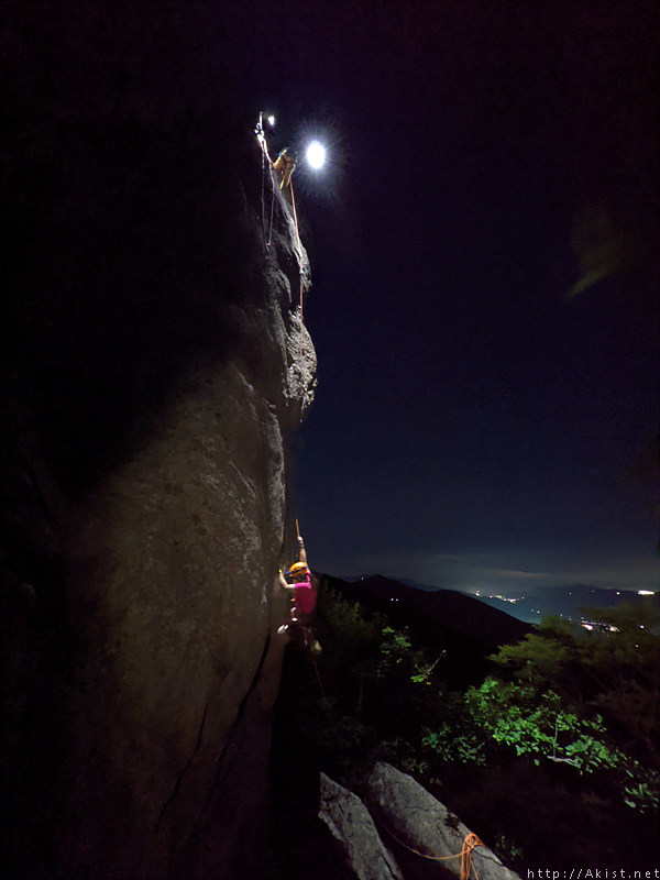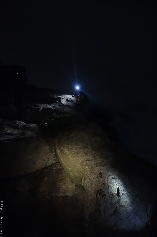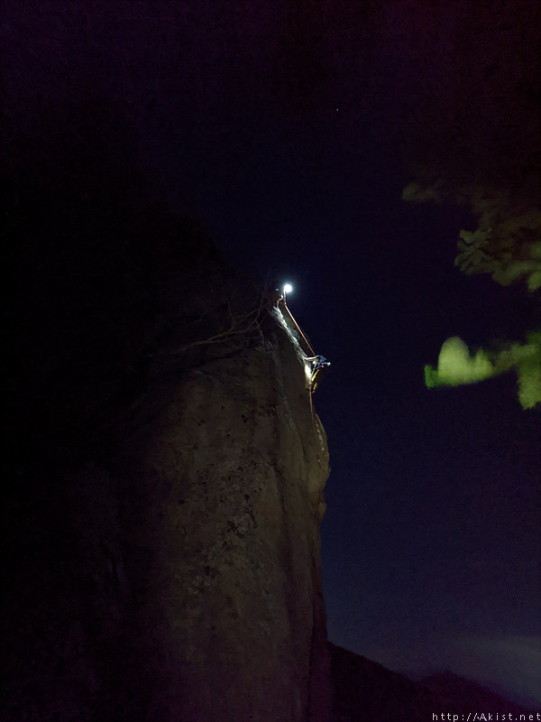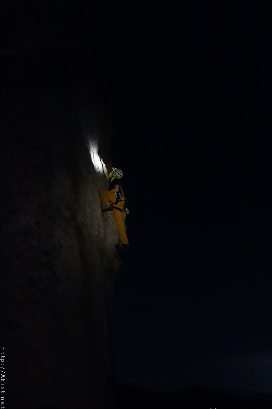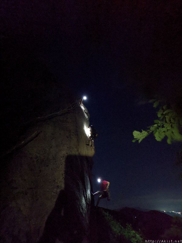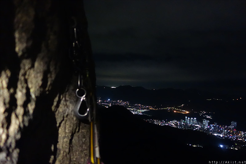 산밑 도시의 불빛도, 랜턴에 비춰진 바위도, 등반하는 사람도