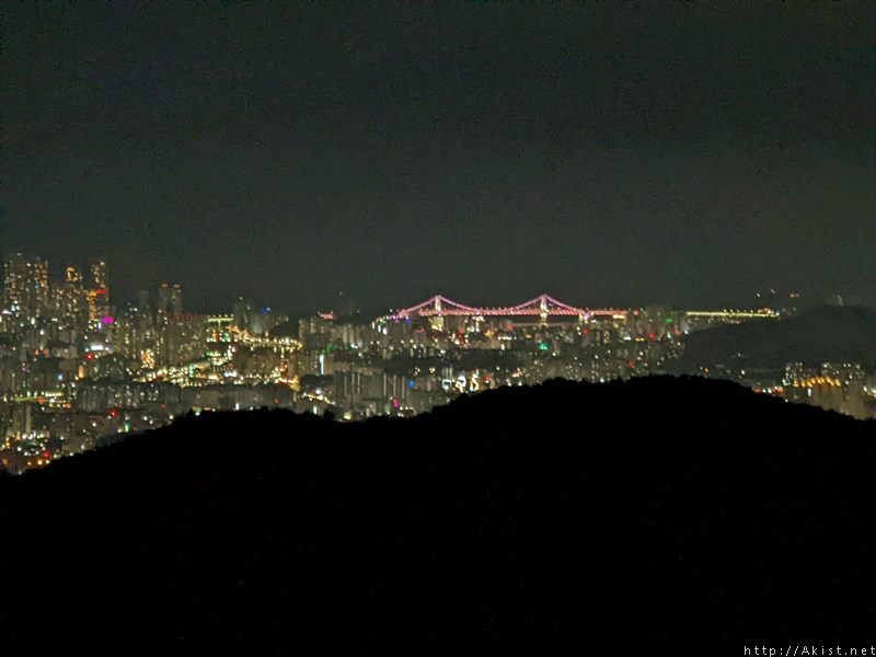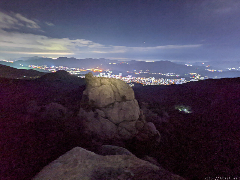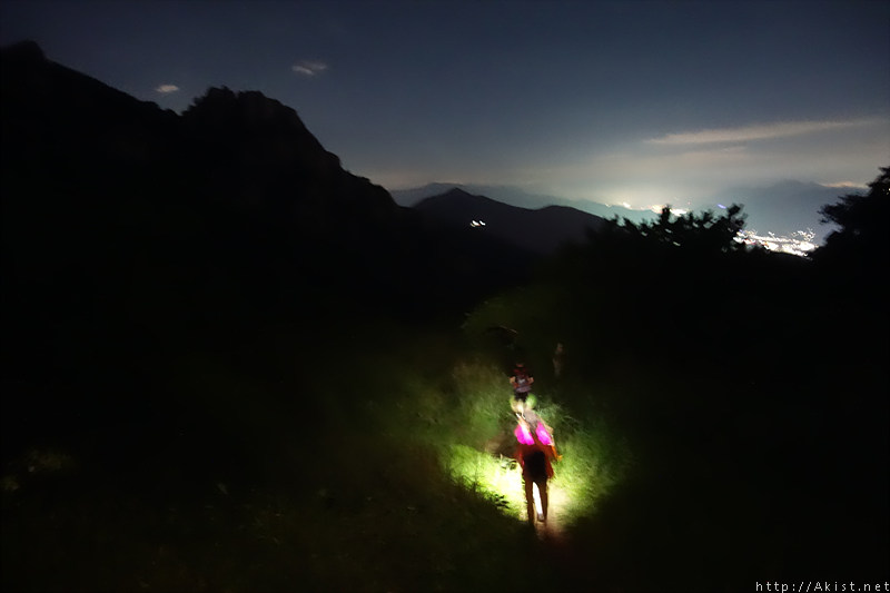 능선 위로 올라서니 주변이 탁트이고, 사람의 불빛이 별빛처럼 일렁거린다.