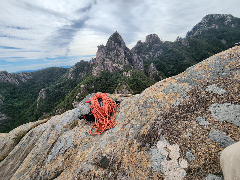 사자봉릿지는 양쪽으로 절벽인 구간이 많음에도, 확보자를 위한 볼트는 없다.