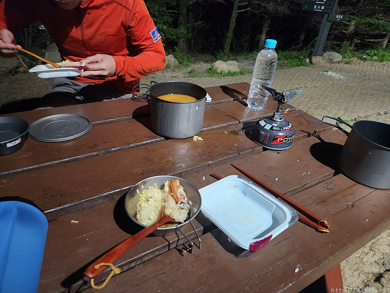 나는 산에 가면 적게 먹고, 짐도 적게 가지고 가는 유형인데 이번에는 일행이 있으니 좀더 챙겨본다.