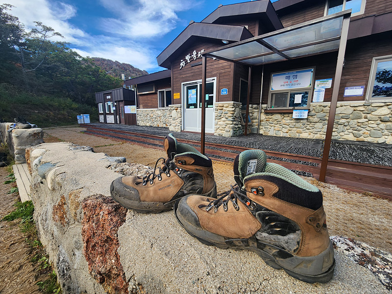 닿을 듯 안 닿는 치밭목 대피소에 도착해 등산화를 벗는다.