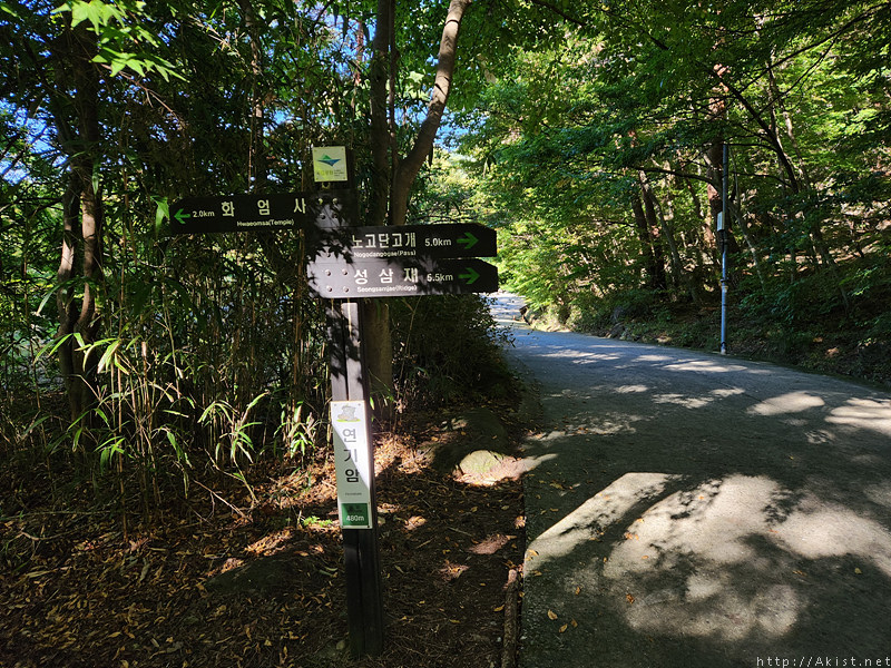 등산로를 얼마 오르지 않아 공사로 막혀있어, 도로를 따라 연기암 방향으로 오른다.