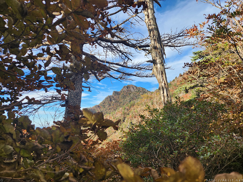 오늘 산행 처음으로 천왕봉이 빼꼼 고개를 내민다.