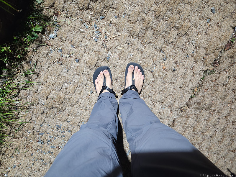 유평 마을에서 샌달로 신발을 갈아신고,