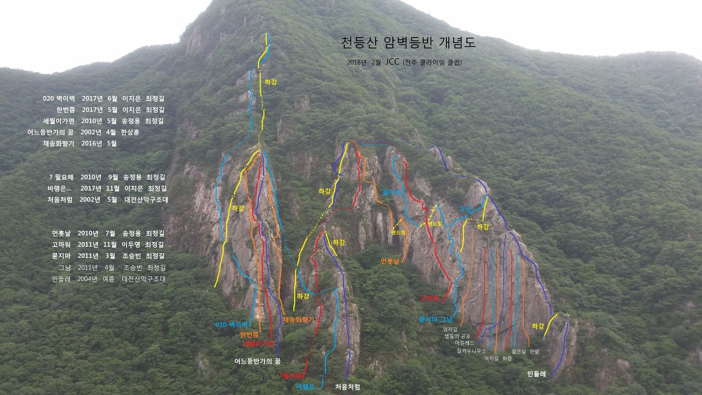 설악산 울산바위를 뒤로하고 노적봉를 피너클을 오르며 절로 시를 읊게된다는 '한편의 시를 위한 길' 처럼, 천등산의 '어느 등반가의 꿈'도 등반선 만큼이나 멋진 이름에서 오는 매력이 있다.