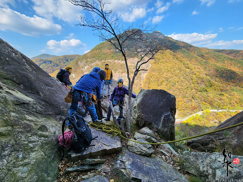 한참을 지나 자일이 올라가기 시작하고, 곧 이어 등반 완료 소리가 들렸다.