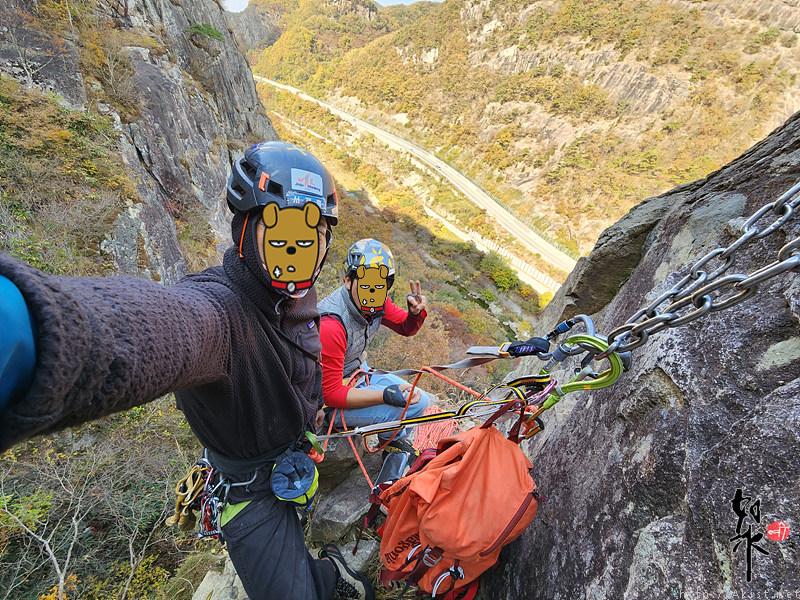 우리 클럽은 등반을 가면 많은 인원에 마음이 급하여 등반도 한줄은 고정, 한줄은 확보 또는 확보, 확보 형태로 연달아 등반을 하는 경우가 많은데 앞선 팀은 6명으로 적지 않은 인원임에도 후등자 확보로 한명씩 한명씩 슬링이나 퀵을 잡는 등의 치팅없이 여유있게 자신의 등반을 하는 모습이 좋아 보였다. 물론 뒤따른 팀으로 속은 타들어갔지만 ㅋ